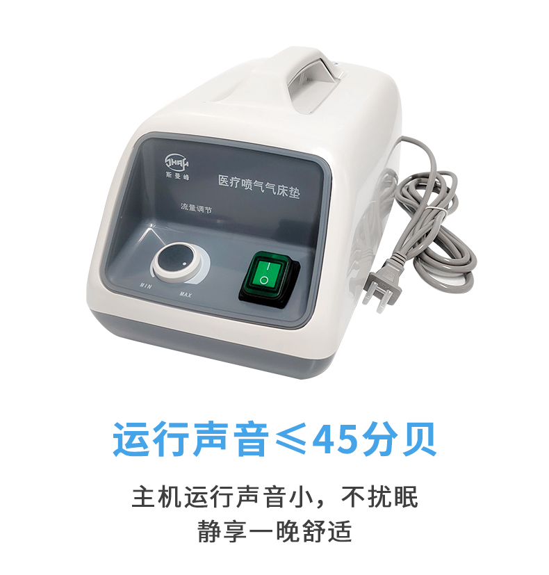 - 噴氣的作用是能降低被褥中的溫度,置換污濁空氣,抑制細(xì)菌生長,結(jié)合氣床墊柔軟的支撐,共同構(gòu)成防治褥瘡的有效機理。