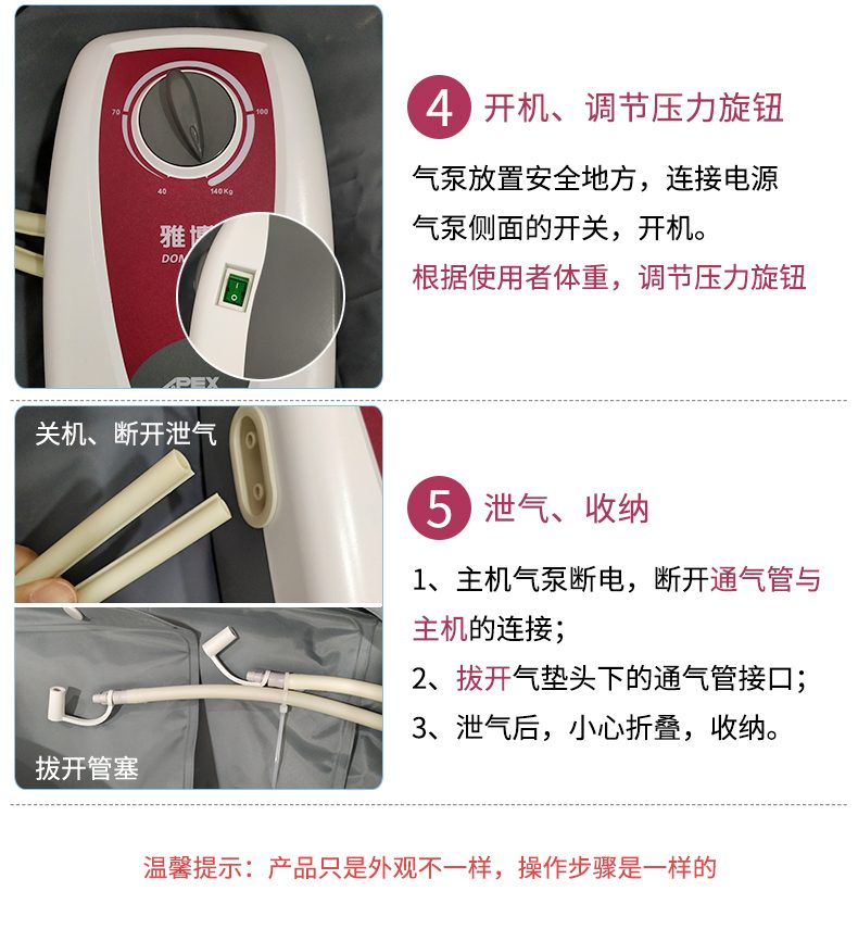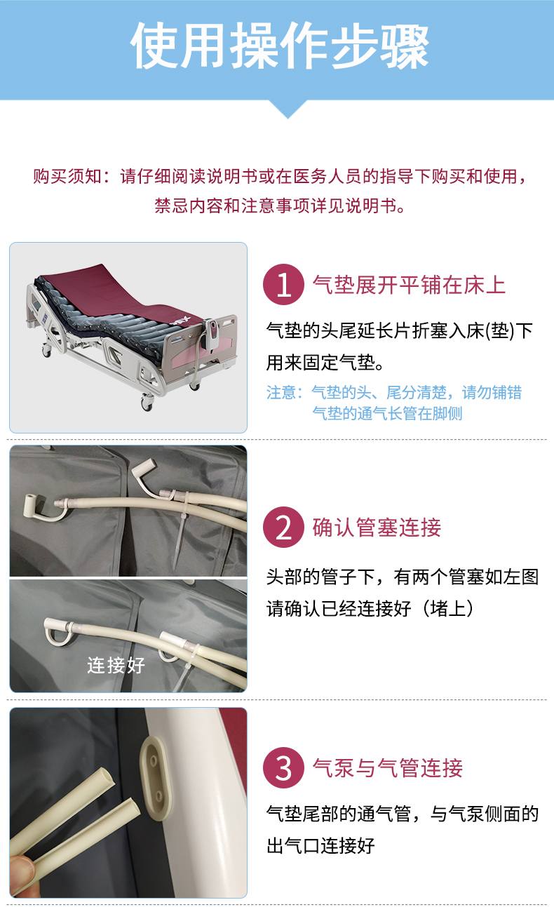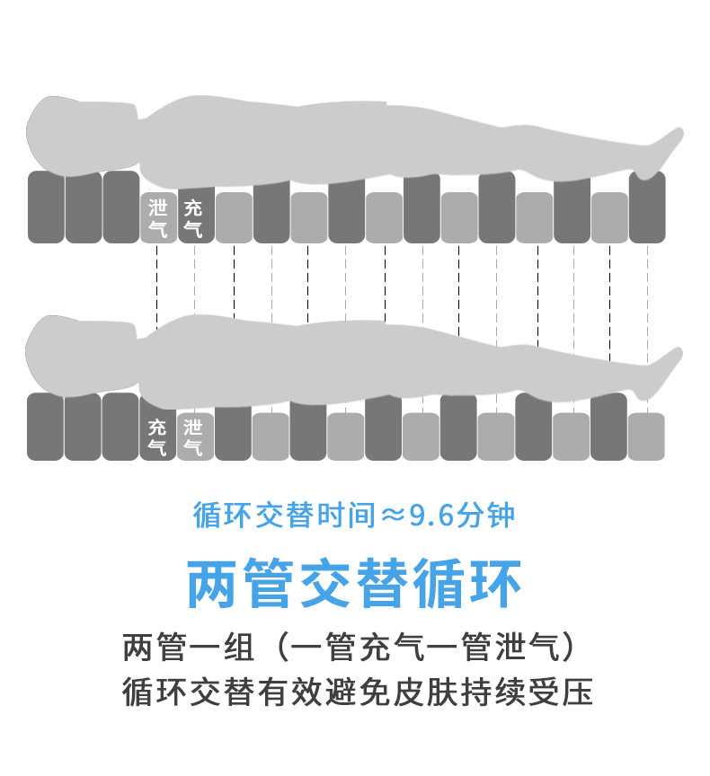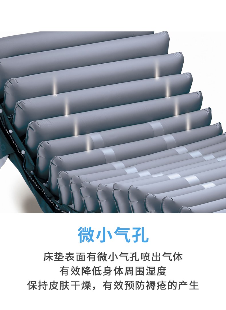 - 二管交替:氣囊穩(wěn)定交替能有效避免皮膚持續(xù)受壓,進(jìn)而達(dá)到預(yù)防褥瘡的效果