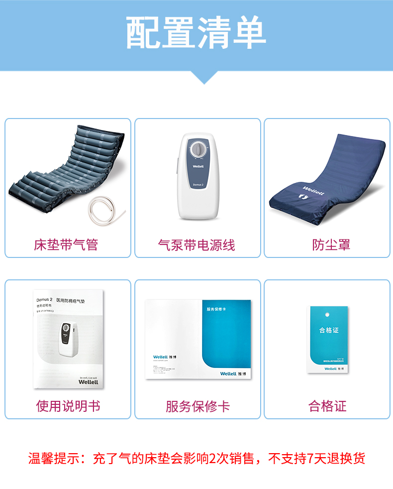 - 產(chǎn)品結(jié)構(gòu)及組成:醫(yī)用防褥瘡氣墊由氣墊(Nylon+PU,PVC,夾網(wǎng)PVC)、導(dǎo)管、充氣泵和上蓋布料(Nylon涂布PU)四部分組成。按技術(shù)參數(shù)與床墊搭配不同分為7種型號。
