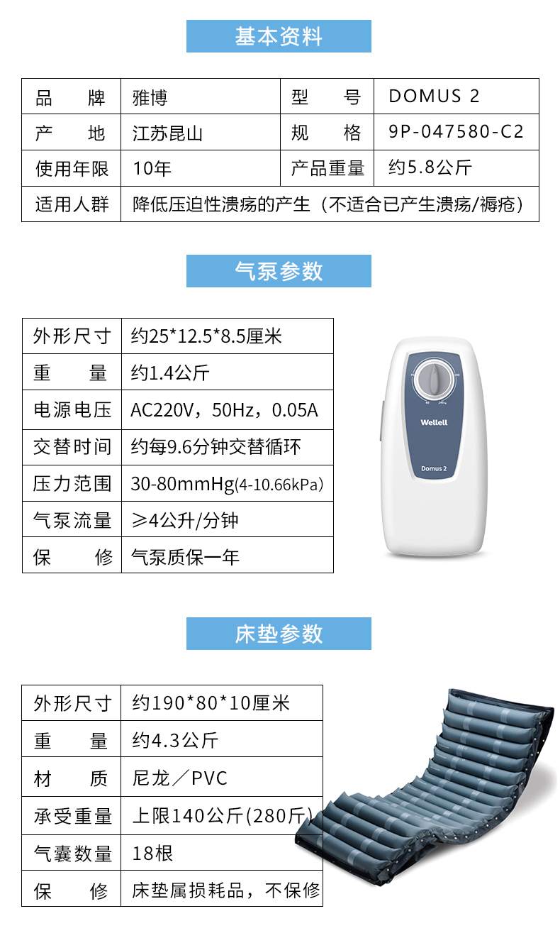 雅博 防褥瘡氣墊 DOMUS 2 產(chǎn)品參數(shù):