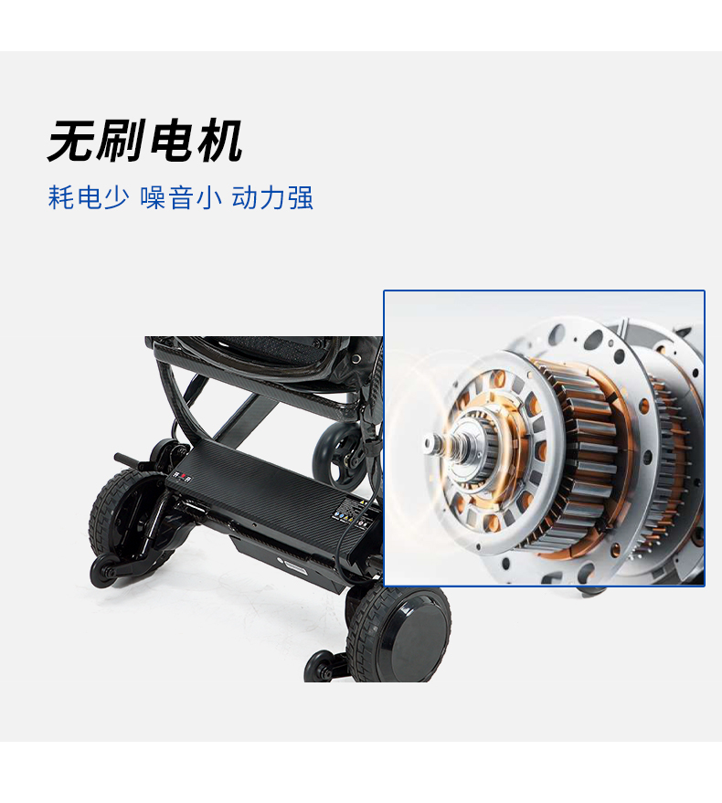 - 產品結構及組成:產品由前輪、驅動輪、車架、控制器、電機及驅動裝置、扶手、推把、靠背、座墊、腳踏板、電瓶盒組成。