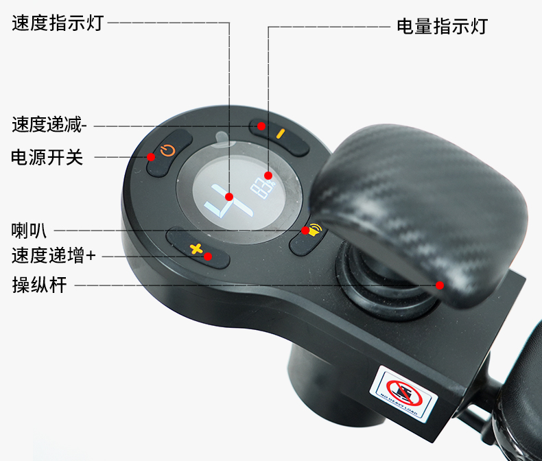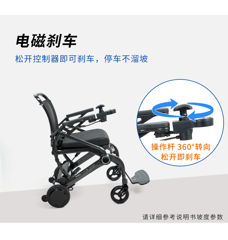 - 產品適用范圍:產品適用于僅乘載一人且使用者質量不超過100kg殘疾或無完全行走能力者代步用。