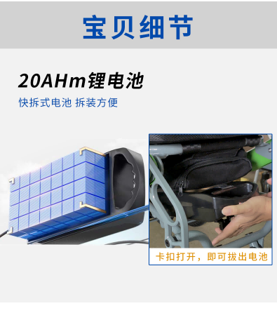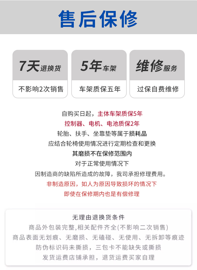 - 產(chǎn)品結(jié)構(gòu)及組成:產(chǎn)品由前輪、驅(qū)動(dòng)輪、車(chē)架、控制器、電機(jī)及驅(qū)動(dòng)裝置、扶手、推把、靠背、座墊、腳踏板、電瓶盒組成。