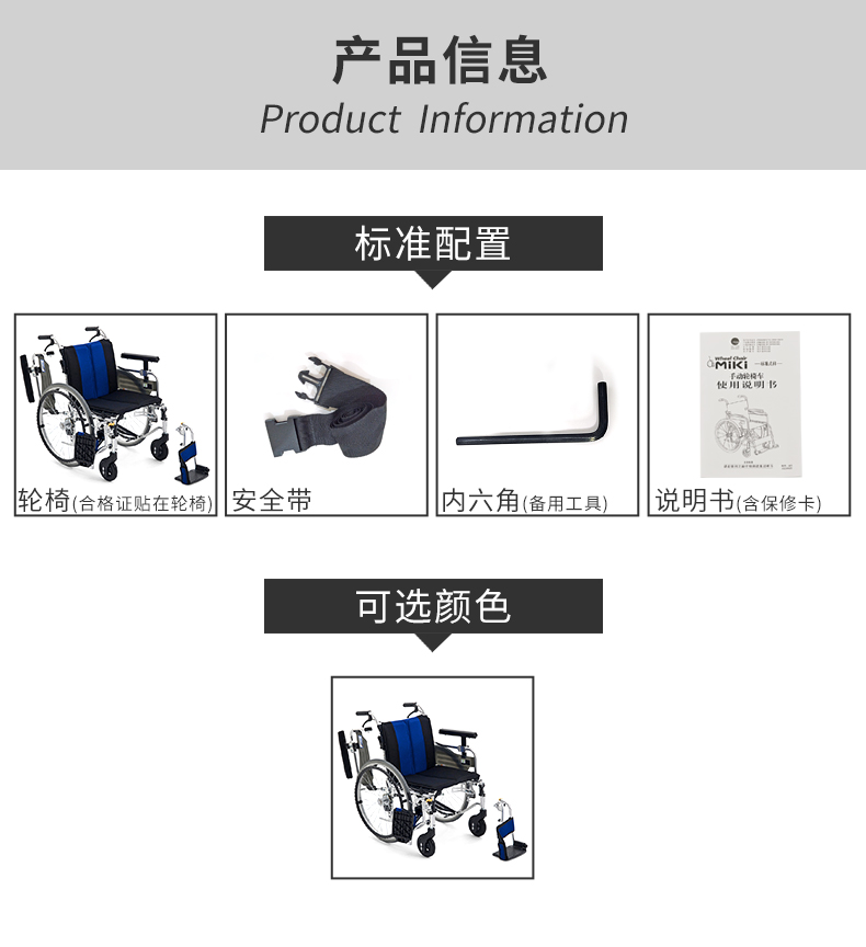 1. 輪椅型號(hào):MYU-4 (大輪)