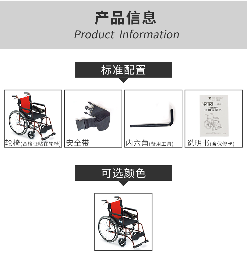 MIKI三貴 手動輪椅車MCV-49JL 產(chǎn)品參數(shù):