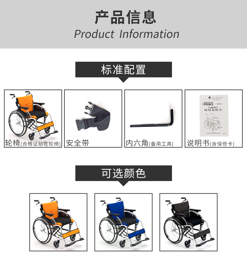 MIKI三貴 手動輪椅車MCS-43JL 產(chǎn)品特點: