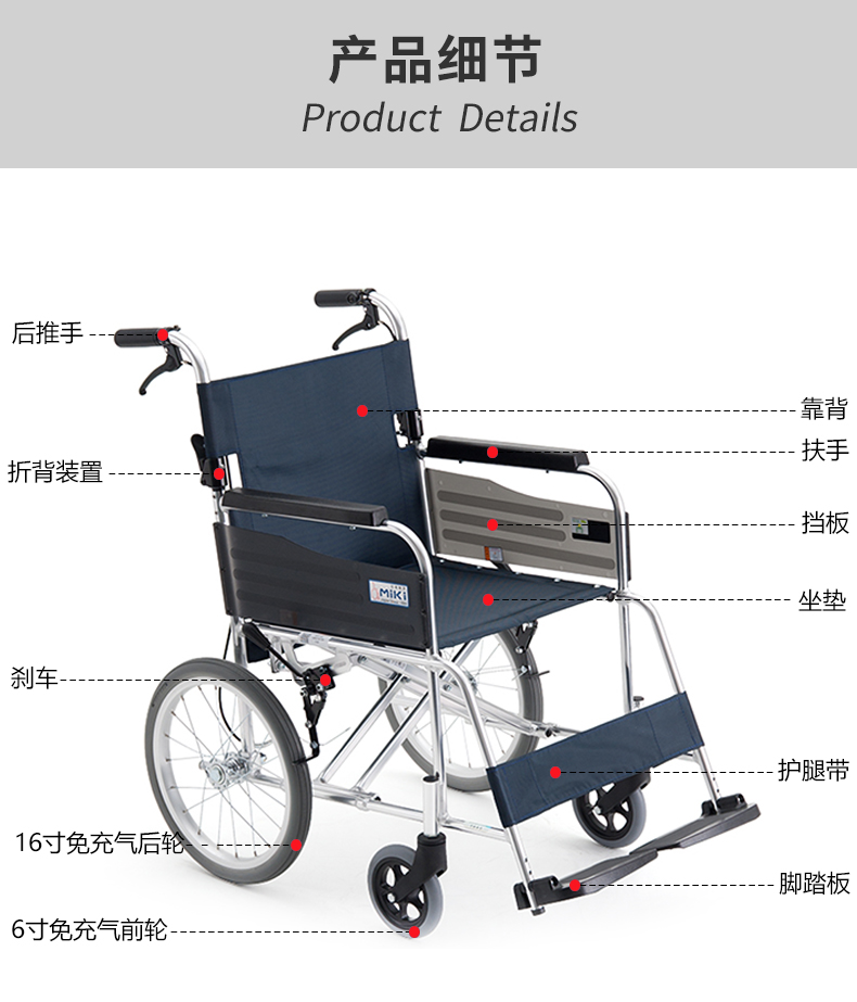 MIKI三貴 手動輪椅車MPTC-46JL  產(chǎn)品特點