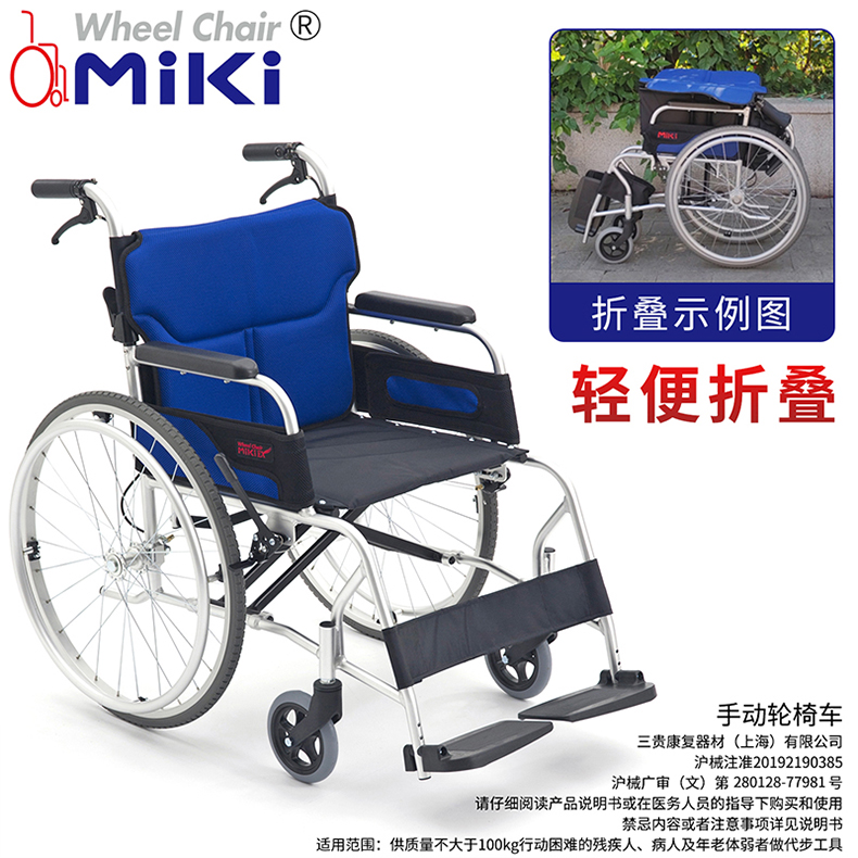 MIKI三貴手動輪椅車M-43RK 折疊輕便 家用老人殘疾人手推代步車貨號:60018150
