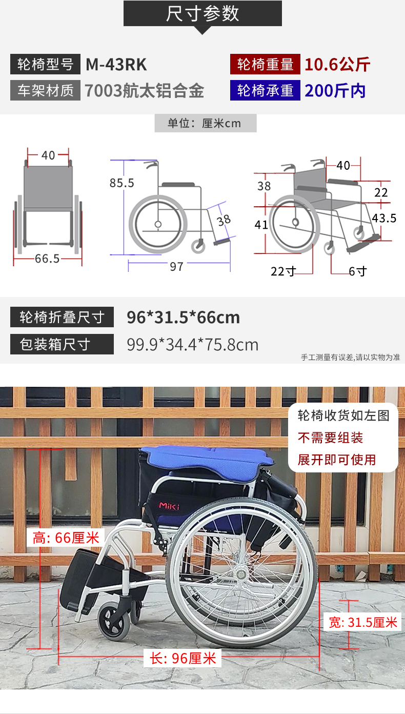 MIKI三貴 手動輪椅車M-43RK  產(chǎn)品參數(shù):
