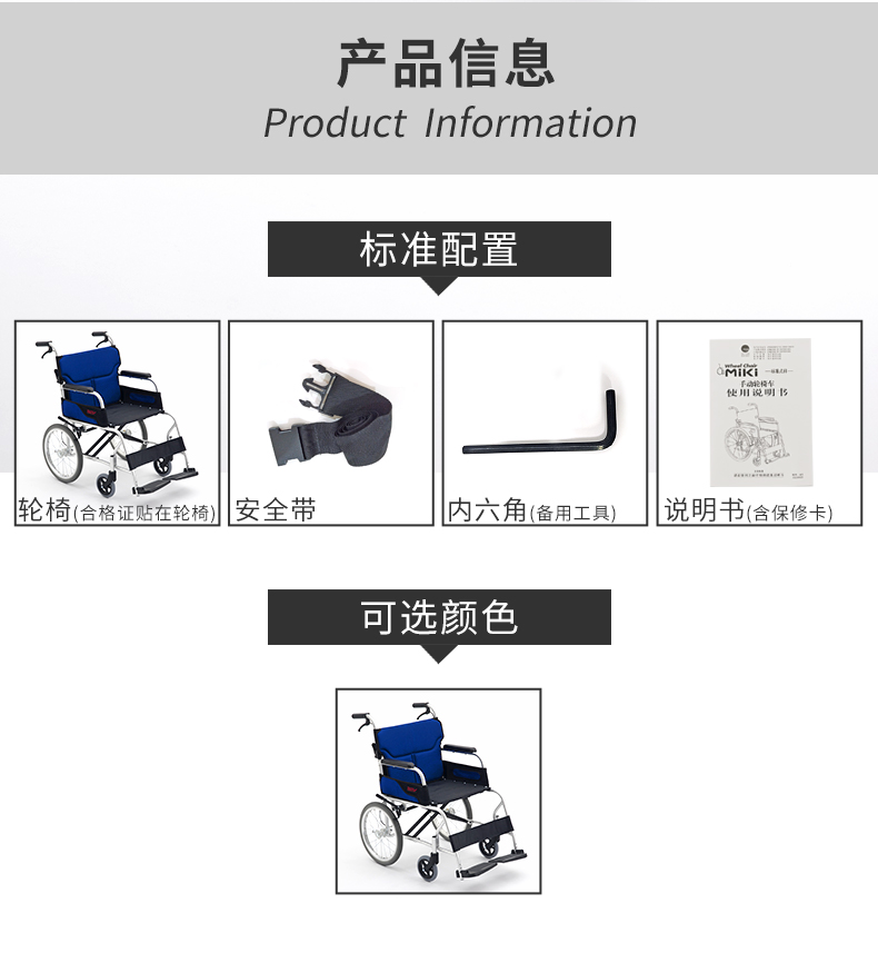 MIKI三貴 手動(dòng)輪椅車MC-43RK 保修服務(wù):
