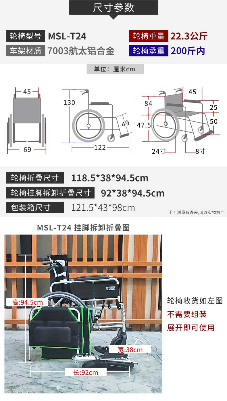 - 輪椅型號:MSL-T24