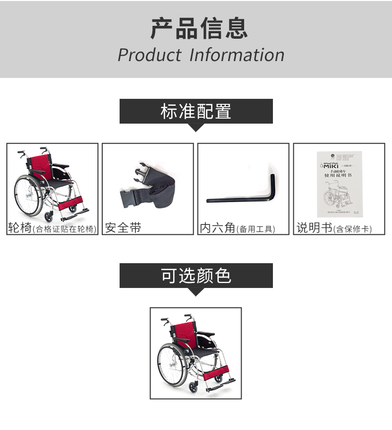 MIKI三貴 手動(dòng)輪椅車MCS-47KJL  產(chǎn)品參數(shù):