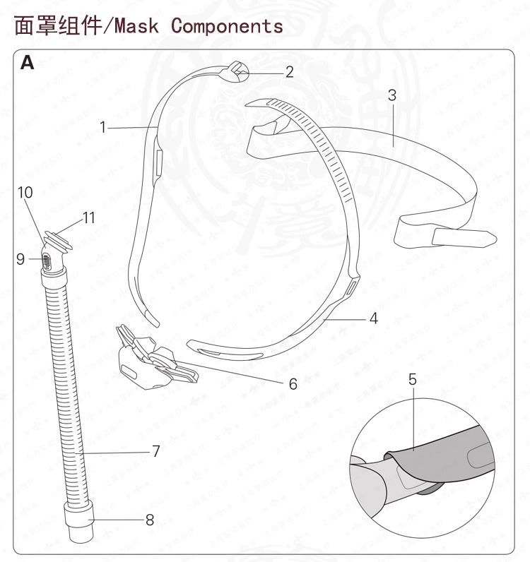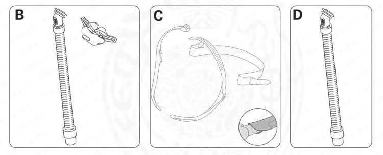 - 死腔信息:實質(zhì)死腔乃是面罩至萬向軸末端的空洞容積。使用大尺寸護墊,則其容積為106毫升。