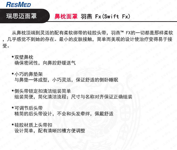 瑞思邁 鼻枕面罩 羽燕 FX(Swift FX) 產(chǎn)品介紹:
