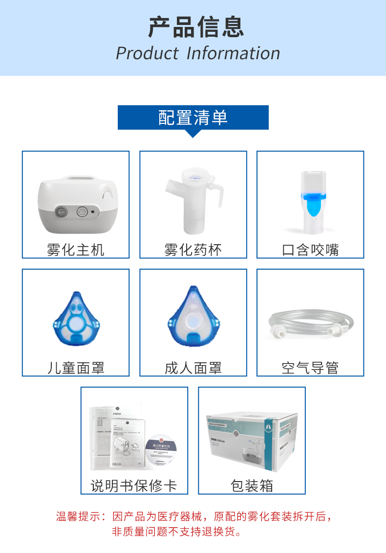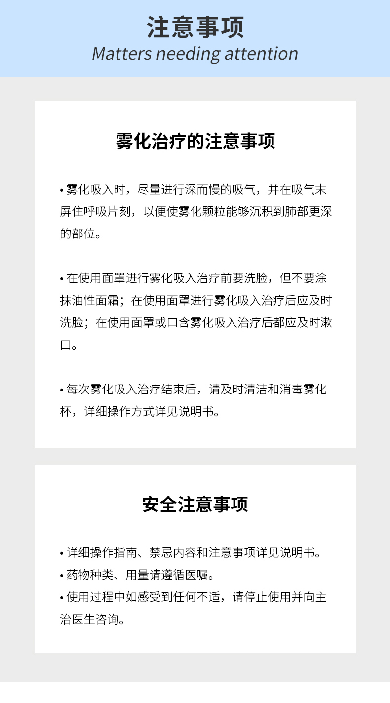 - 產(chǎn)品適用范圍:適用于呼吸道疾病患者的霧化吸入治療。