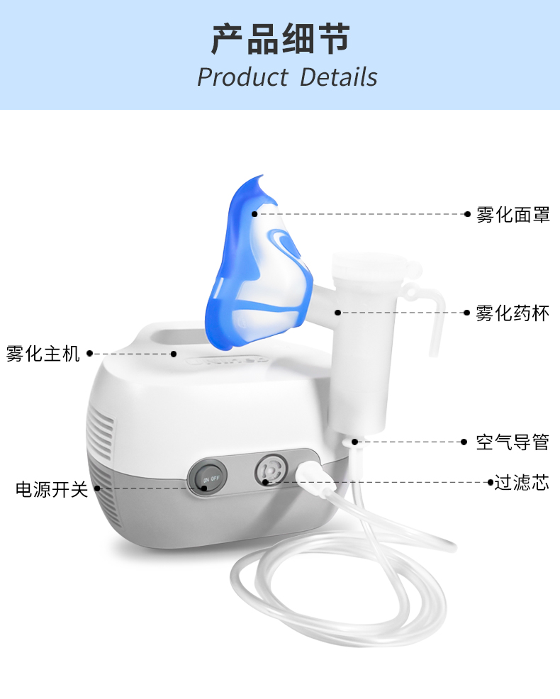 壓力強(qiáng)勁,性能穩(wěn)定,可提供更高質(zhì)的霧化吸入。