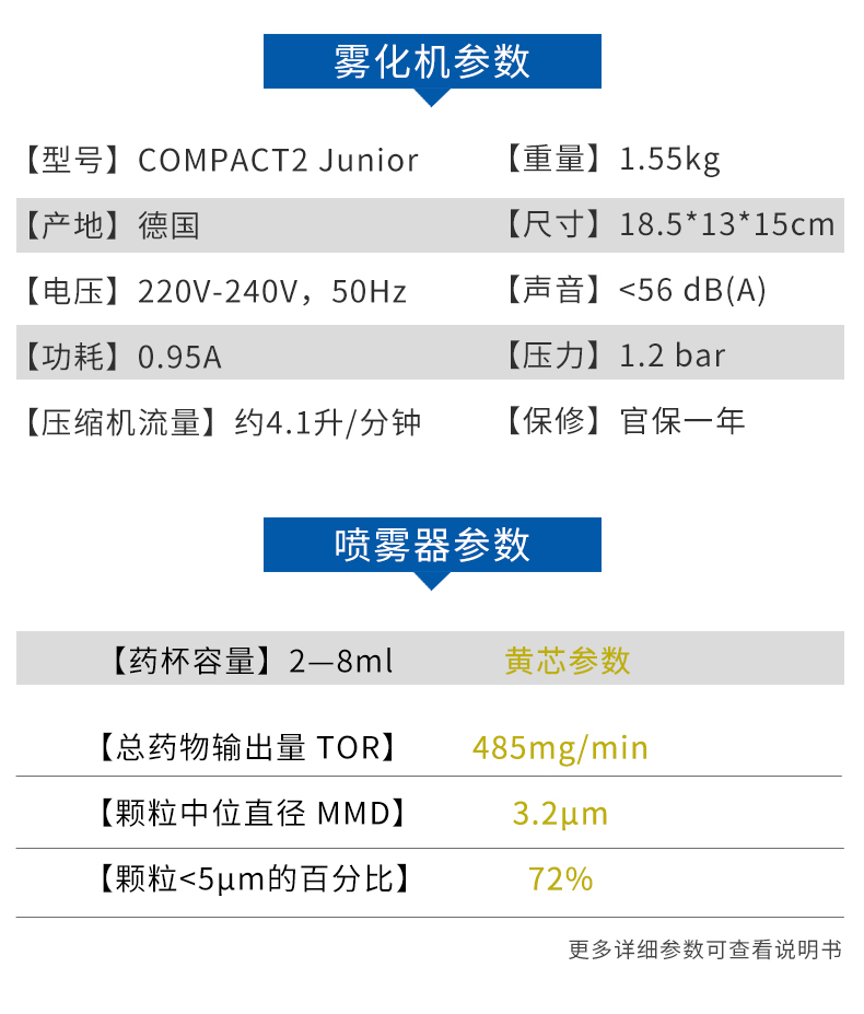 德國PARI 帕瑞霧化器 COMPACT2 Junior 產(chǎn)品參數(shù):