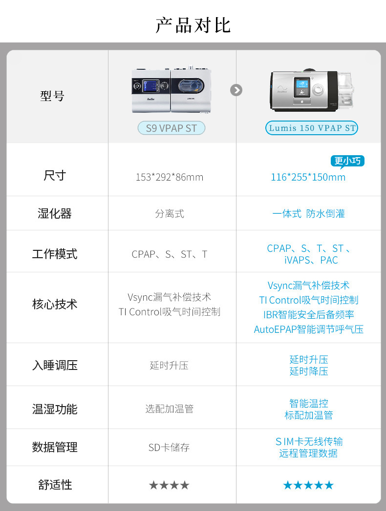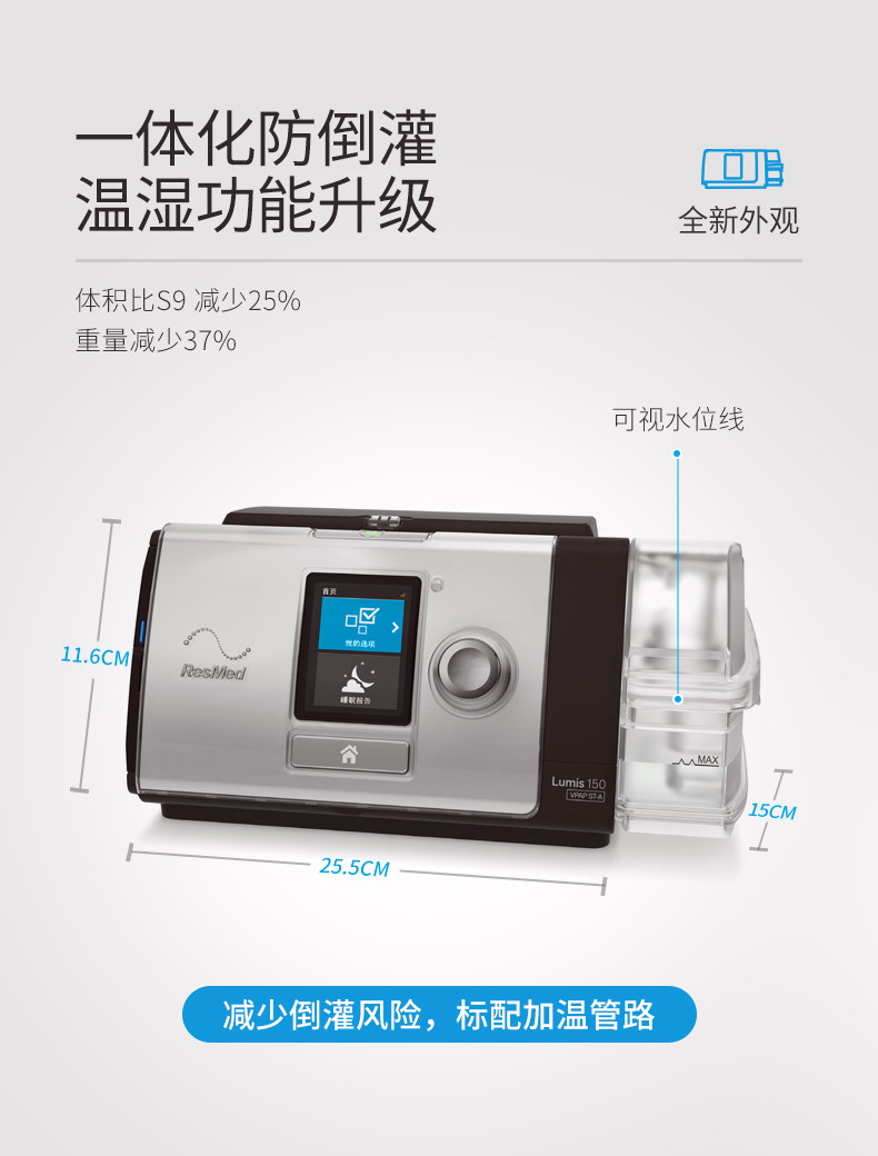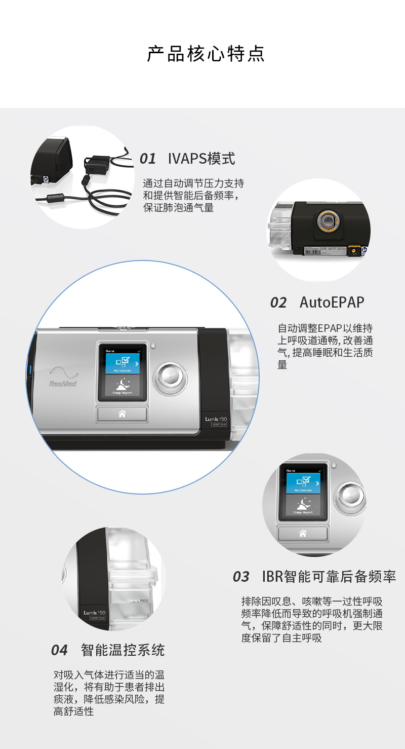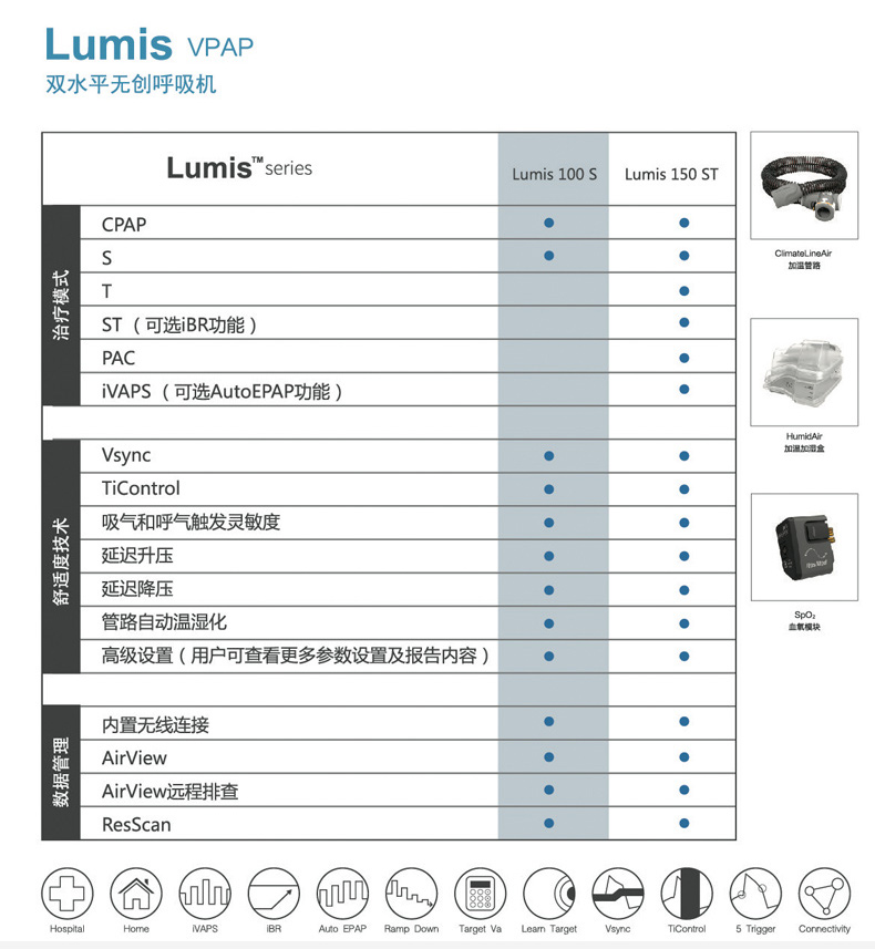 瑞思邁 雙水平無創(chuàng)呼吸機 Lumis 150 VPAP ST 產(chǎn)品特點: