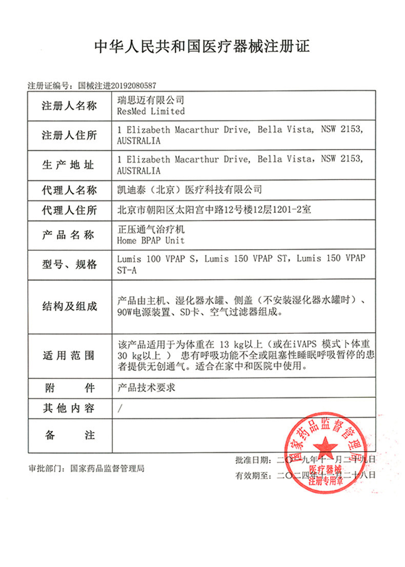 我們向您保證您定購的Resmed 瑞思邁呼吸機Lumis 150 VPAP ST為全新正品,產(chǎn)品保修卡、合格證齊全,所有產(chǎn)品均可享受全國聯(lián)保服務。