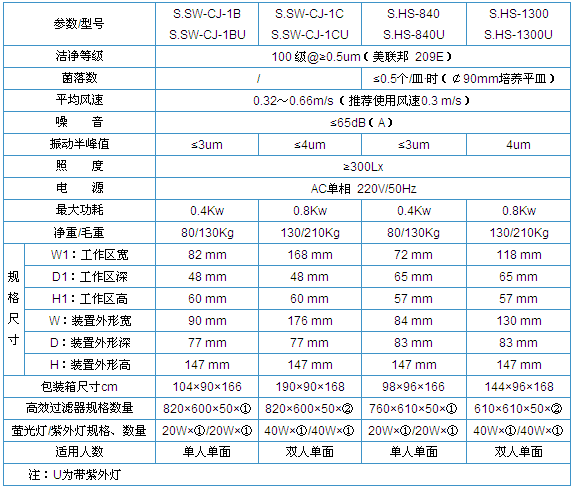 “上海博泰”凈化工作臺S·SW-CJ-1BU 適用范圍