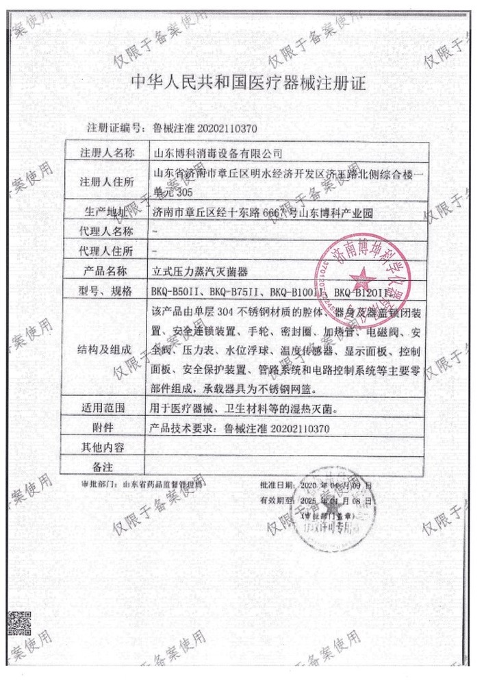 - 生產(chǎn)企業(yè):山東博科消毒設備有限公司