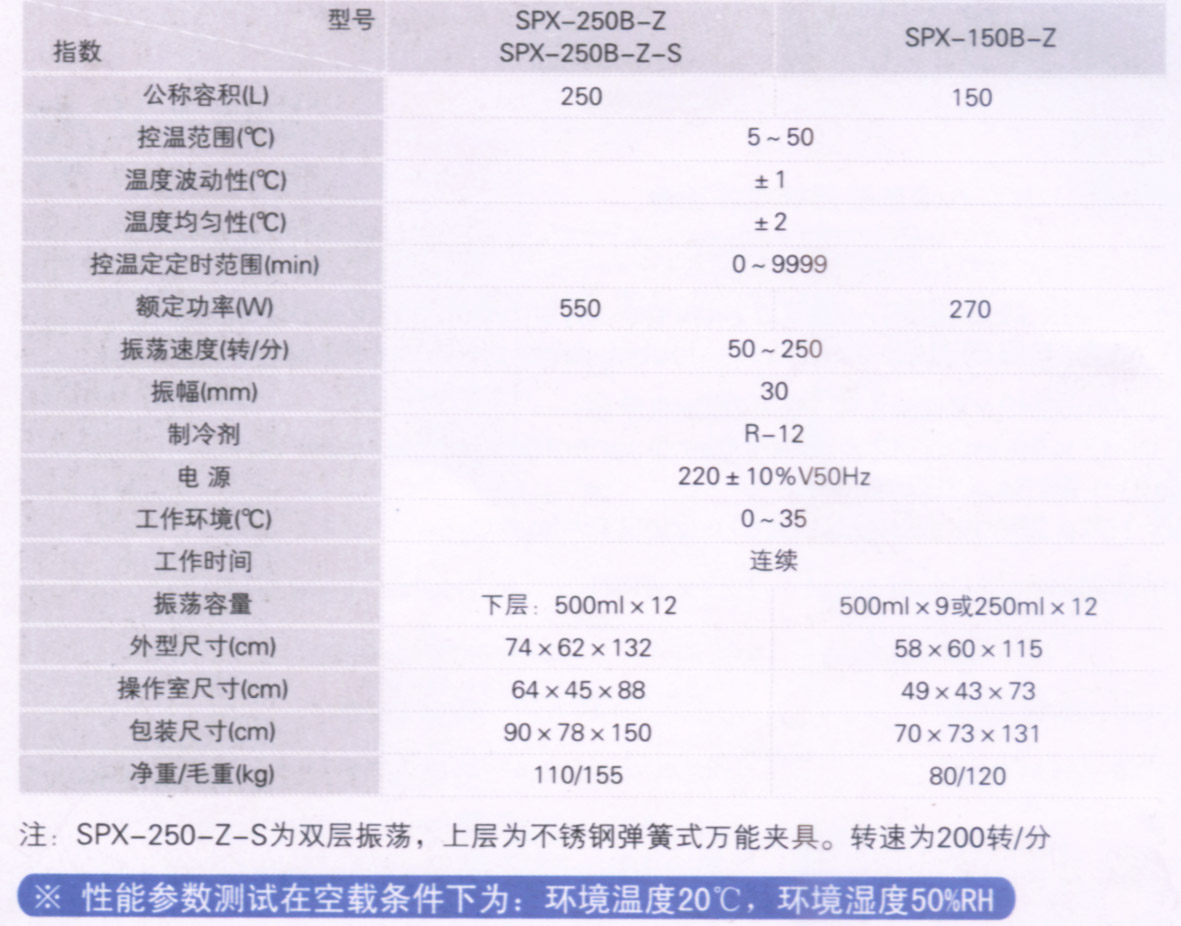 恒溫振蕩培養(yǎng)箱 (SPX系列)性能對(duì)比表:
