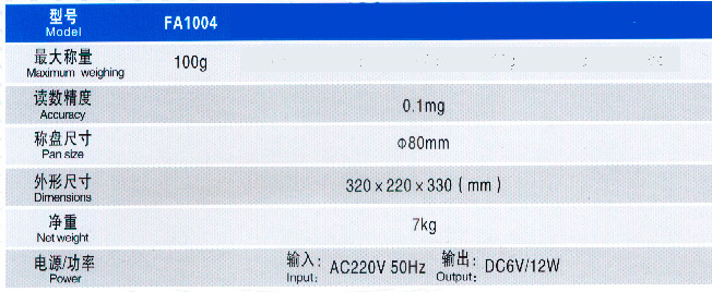 安靈電子分析天平FA1004-參數(shù)