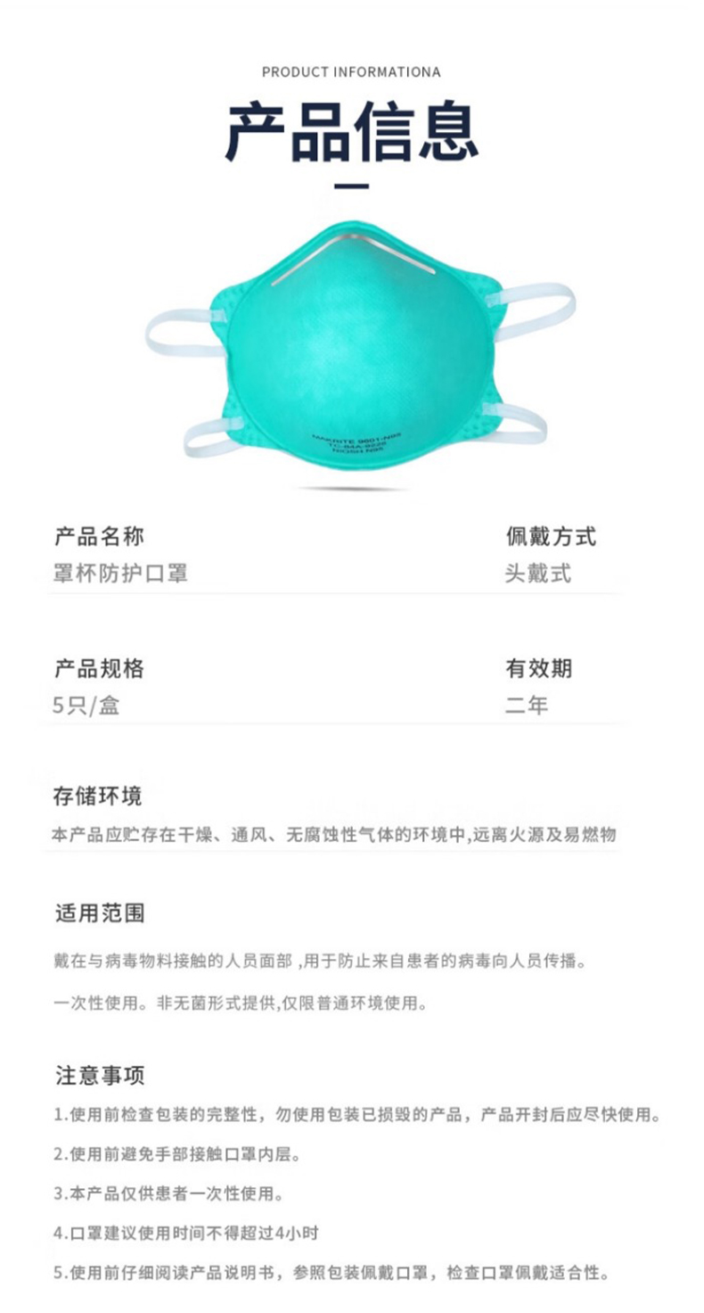 - 商品名稱:夢特瑞醫(yī)用防護(hù)口罩 普通級拱形頭戴式口罩