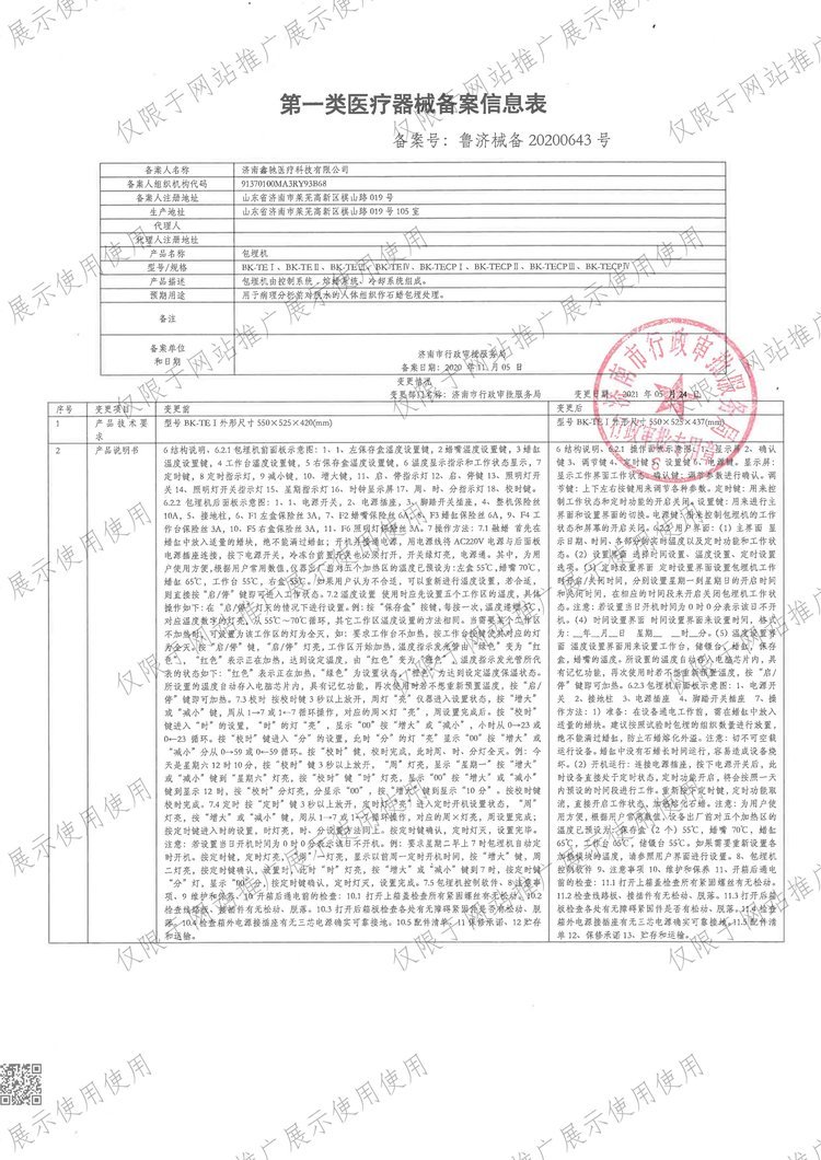 - 產(chǎn)品注冊證號:魯濟械備20200643號