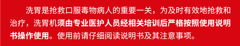 適用于各醫(yī)療單位、急救中心等搶救食物中毒、服毒患者以及手術(shù)前洗胃,是新一代理想的洗胃設(shè)備。