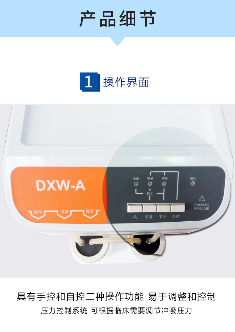- 具有手控進(jìn)出洗胃和自控洗胃二種操作功能,易于調(diào)整和控制;