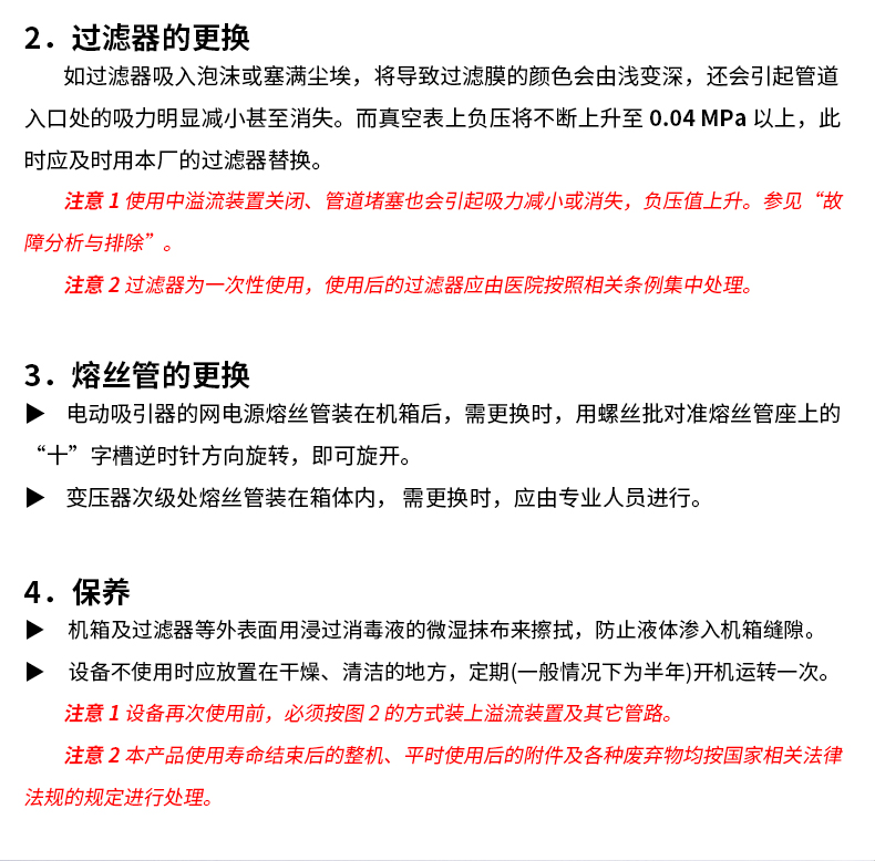 • “無油活塞泵”作為負壓源的電動吸引器日常維護: