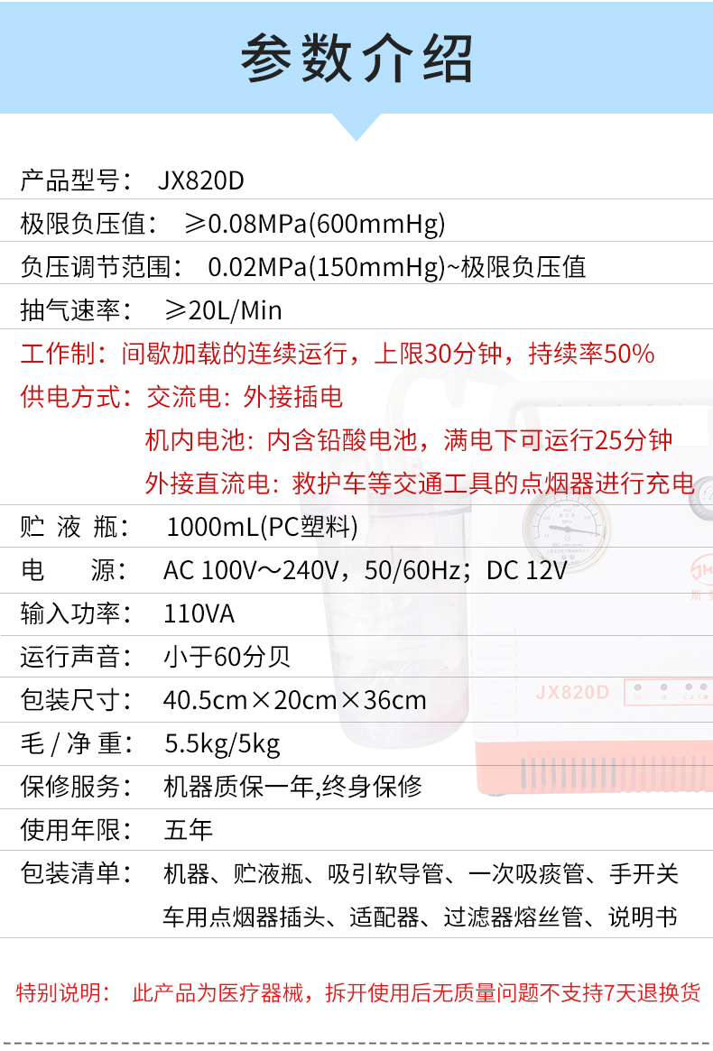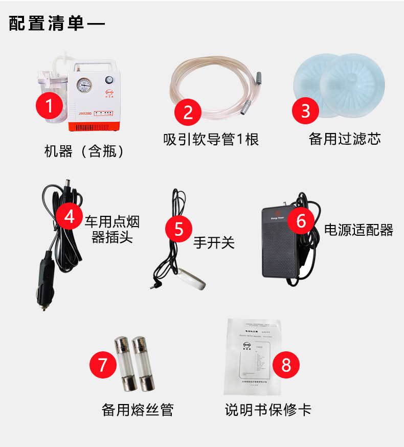 上海斯曼峰 便攜式吸引器 JX820D(鉛酸電池)產品附件: