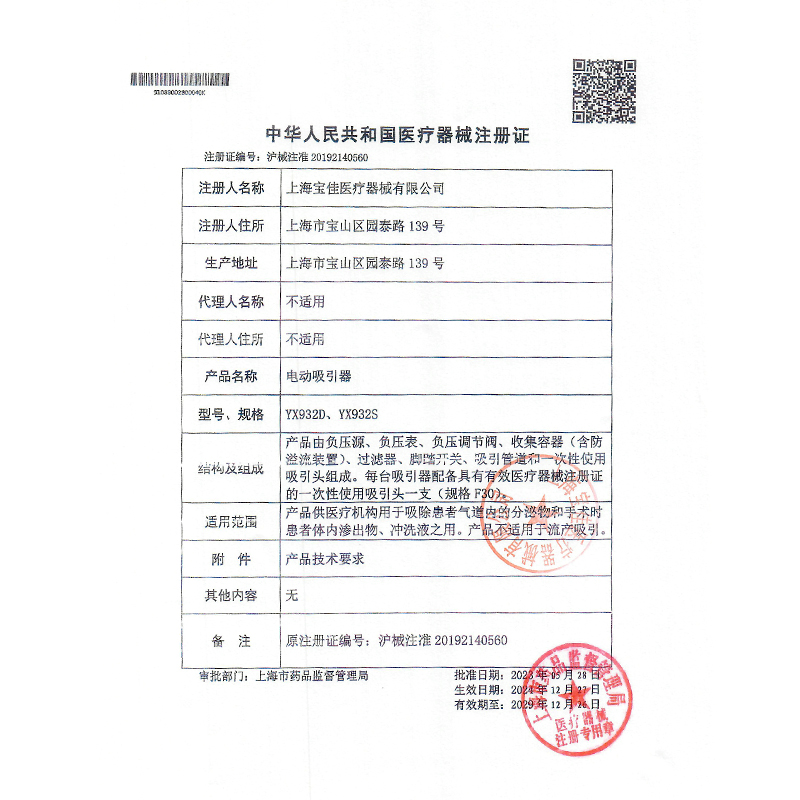 • 產(chǎn)品注冊(cè)證號(hào):滬械注準(zhǔn)20192140560