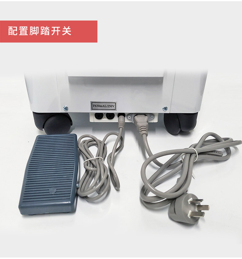 2. 設(shè)備后部的槽型板內(nèi)可放置腳踏開關(guān)及電源線等;