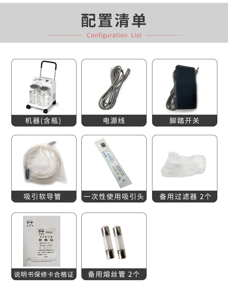 上海斯曼峰 電動(dòng)吸引器 YX932D 產(chǎn)品附件:
