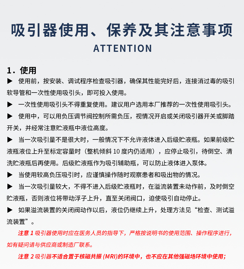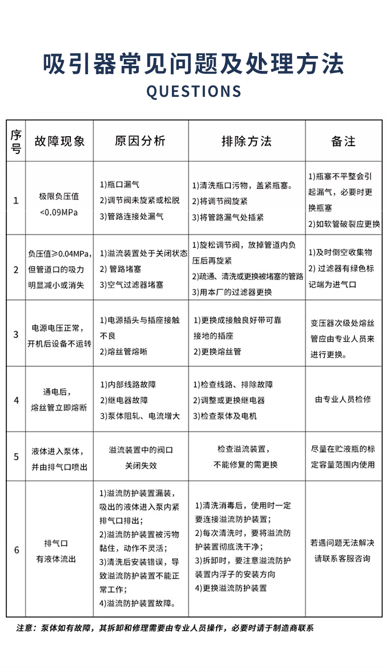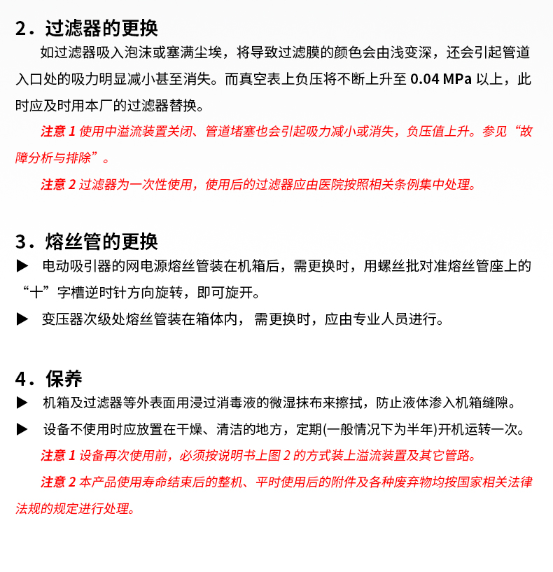 • “無油活塞泵”作為負壓源的電動吸引器日常維護: