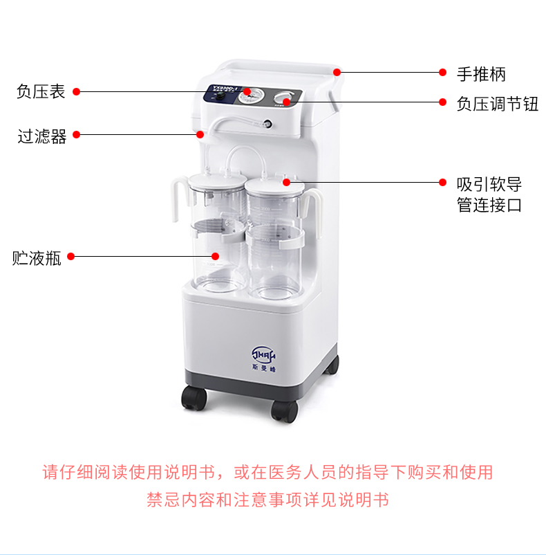 屬于高負壓,大流量手推式吸引器,不僅同樣適用于手術室,更適用于病房使用。