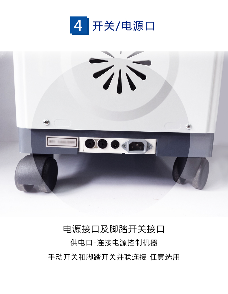 7. 手動開關和腳踏開關并聯(lián)連接,實現(xiàn)雙重啟停控制,可供臨床任意選用。