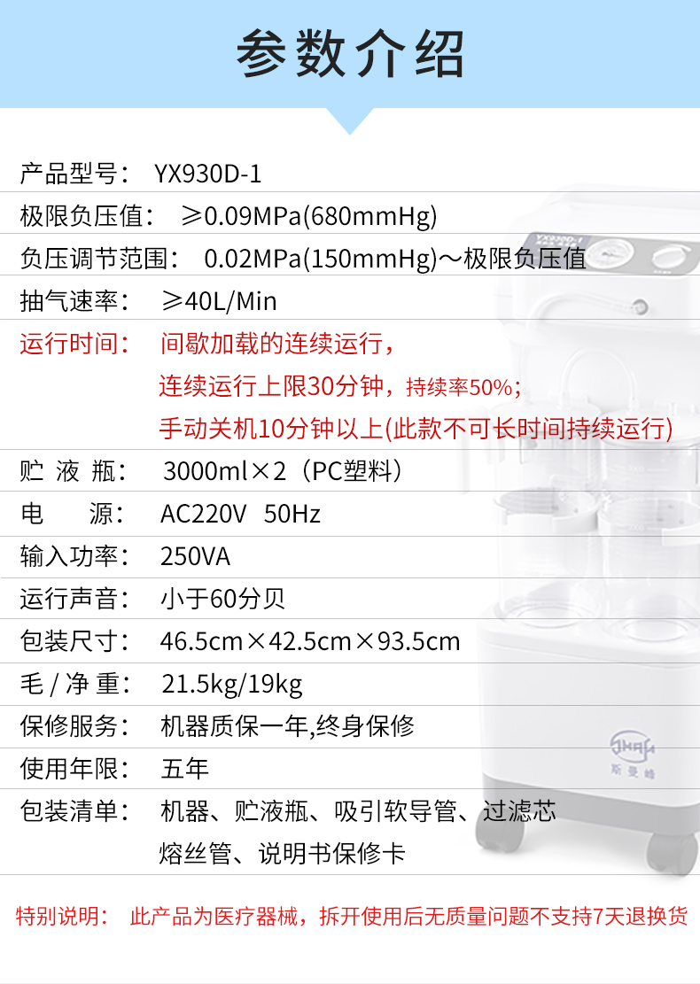 上海斯曼峰 電動吸引器YX930D-1 技術參數(shù):