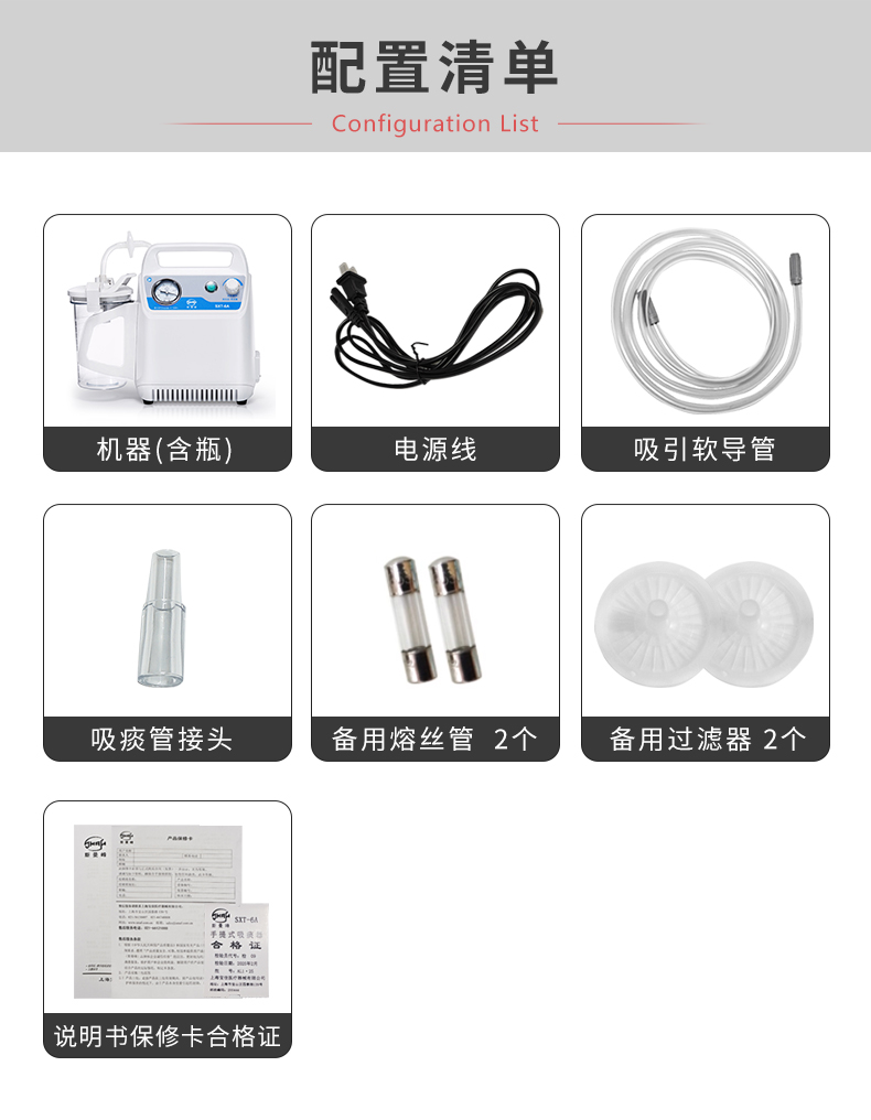 上海斯曼峰 手提式吸痰器 SXT-6A 產(chǎn)品附件: