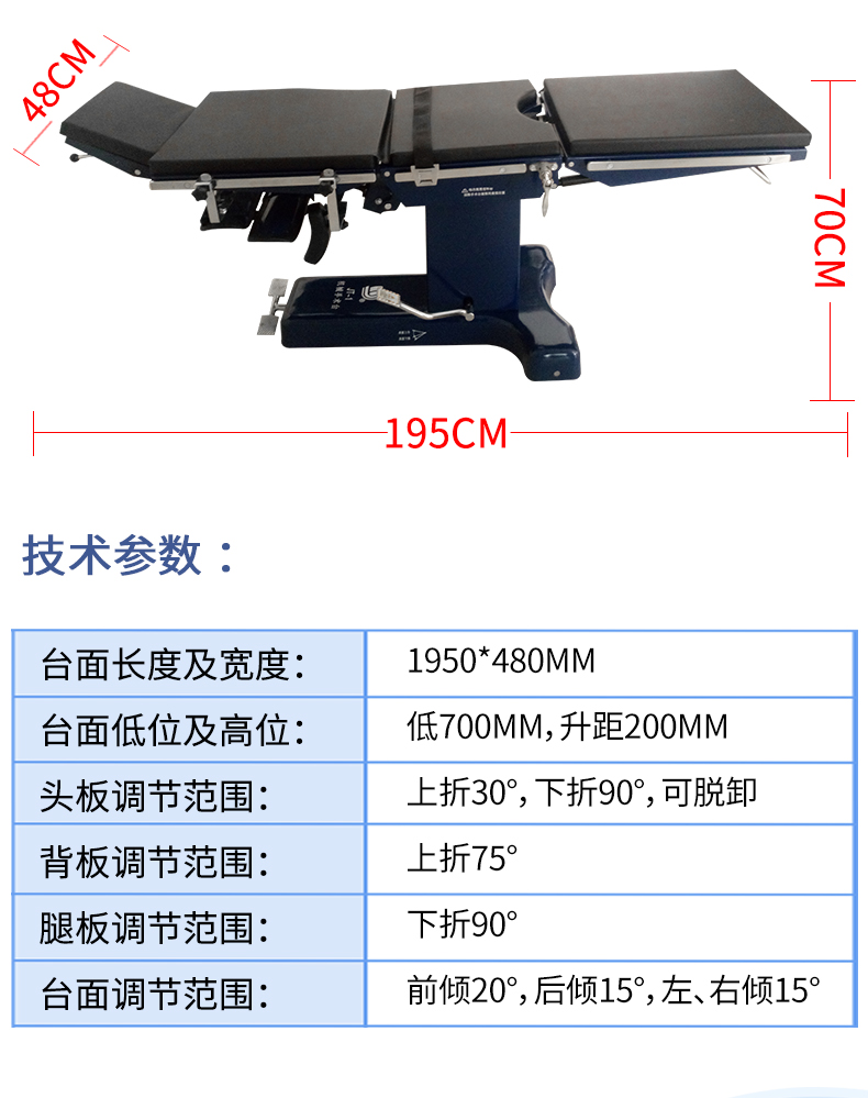 - 各體位調(diào)節(jié)均用手柄操縱,操縱采用左側(cè)操縱方式,便于手術(shù)順利進(jìn)行。