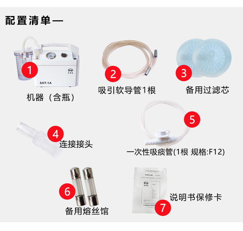 上海斯曼峰 成人吸痰器 SXT-1A 產(chǎn)品附件: