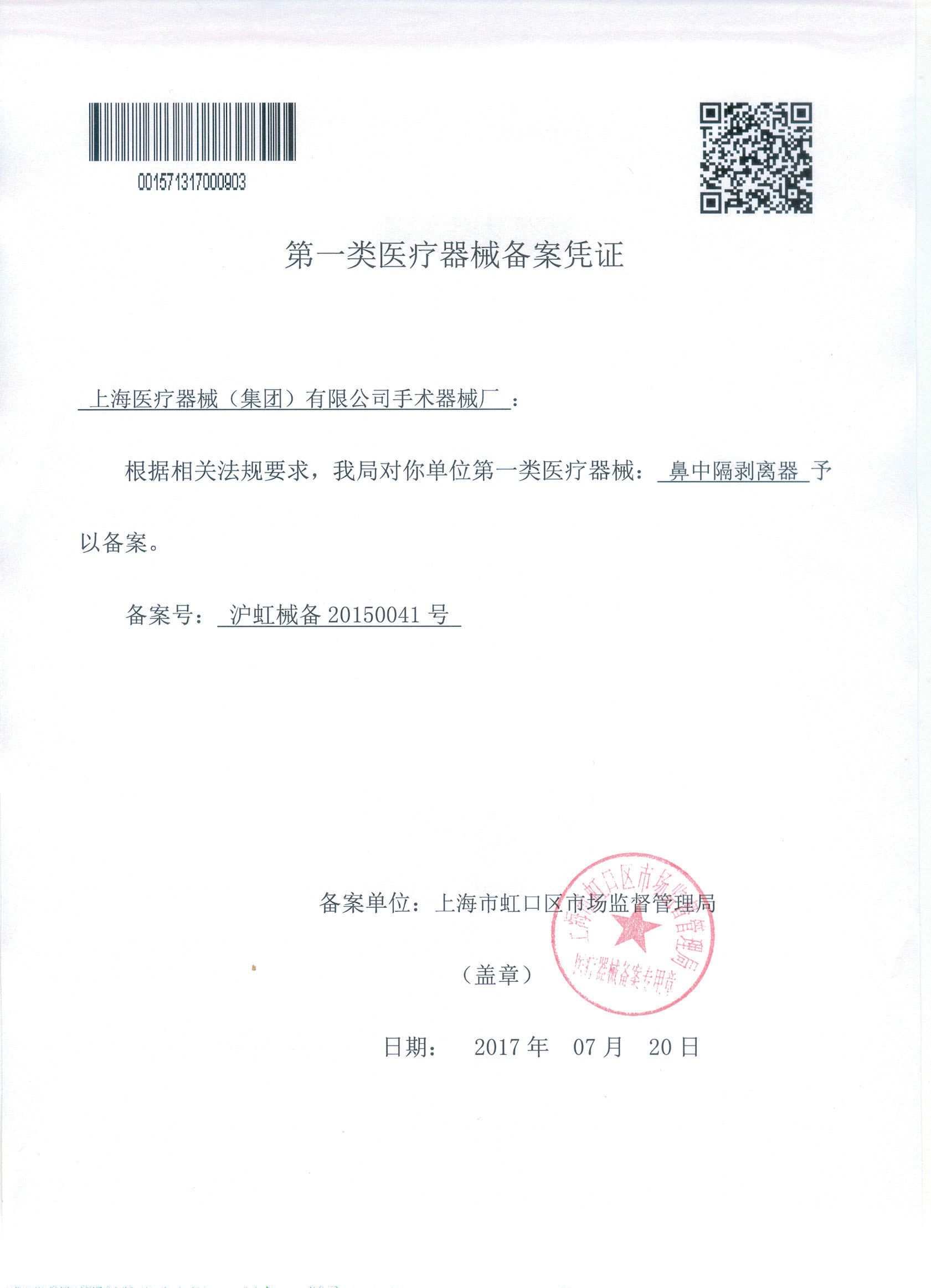 - 產(chǎn)品注冊證號:滬虹械備20150041號