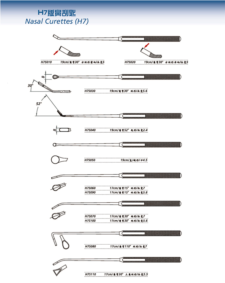 金鐘鼻刮匙角彎 H7S040 19cm 角彎52° 匙形 頭寬2.4