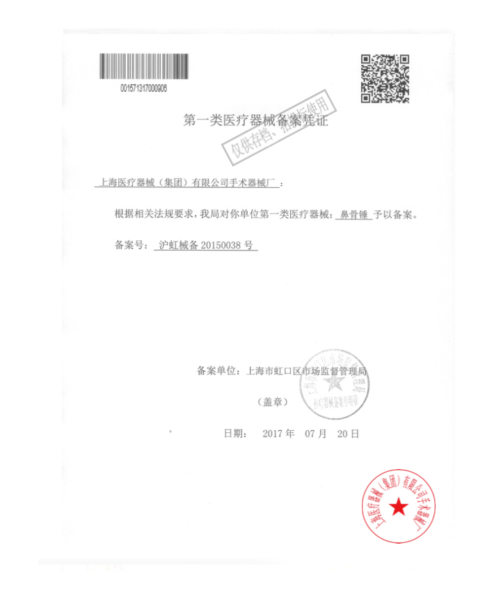 - 產(chǎn)品注冊證號:滬虹械備 20150038 號