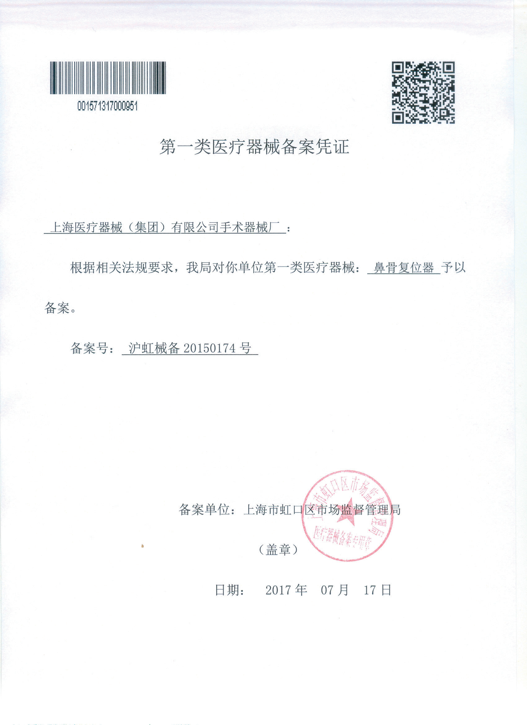 - 產(chǎn)品注冊(cè)證號(hào):滬虹械備20150174號(hào)