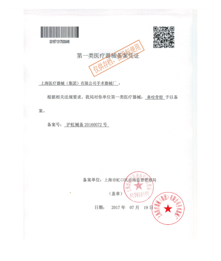 - 生產(chǎn)企業(yè):上海醫(yī)療器械(集團)有限公司手術(shù)器械廠(金鐘)