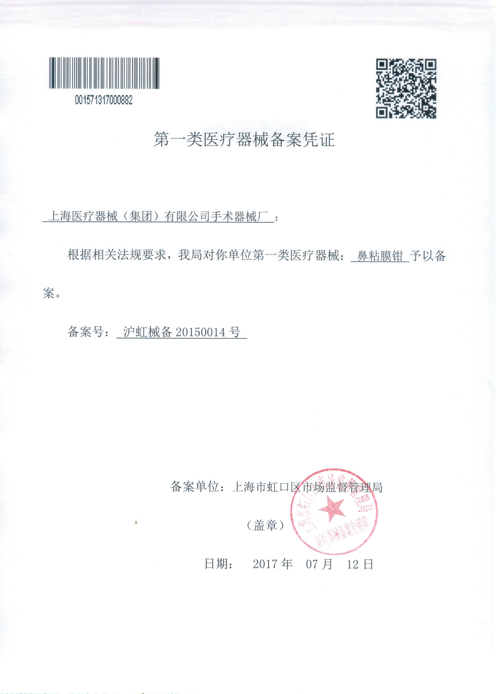 - 產(chǎn)品注冊(cè)證號(hào):滬虹械備20150014號(hào)
