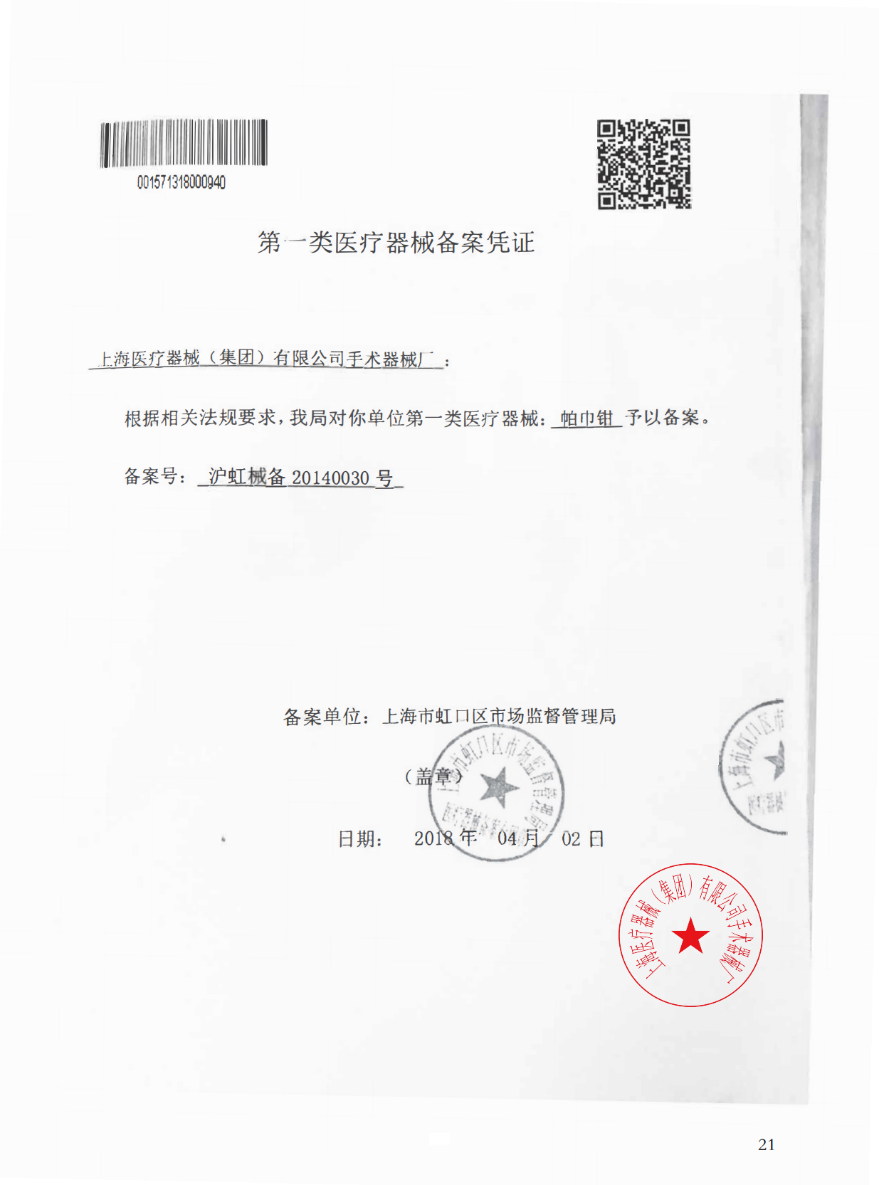 - 產(chǎn)品注冊證號:滬虹械備20140030號